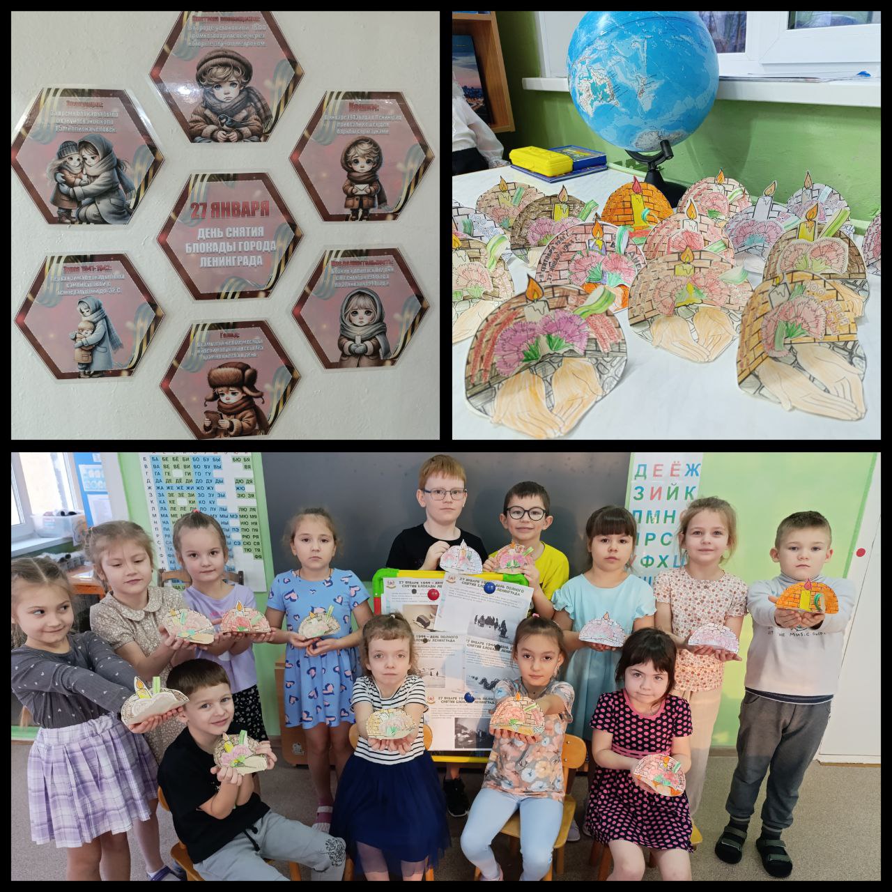 В подготовительной группе “Фантазёры” прошел тематический день, посвященный Дню снятия блокады Ленинграда. Ребятам показали презентацию «Блокада Ленинграда», из которой они узнали о том, как дети в блокадном городе сражались с голодом, холодом, смертью, как с первых дней войны старались помочь взрослым. Большое впечатление на ребят произвел рассказ о норме хлеба блокадников. Выполнили поделку из бумаги “Мемориал”.