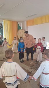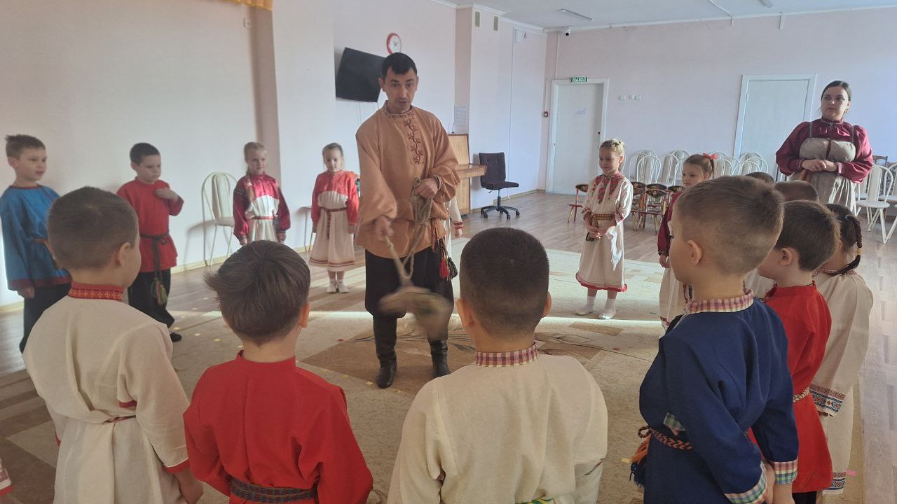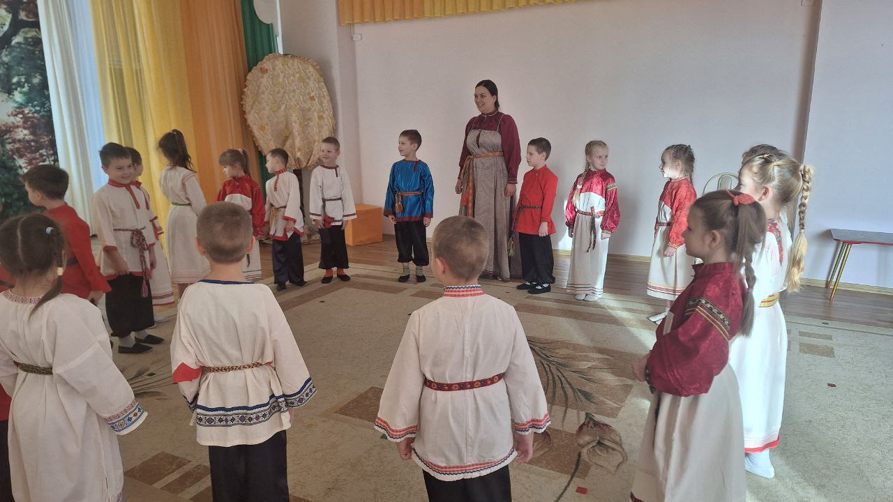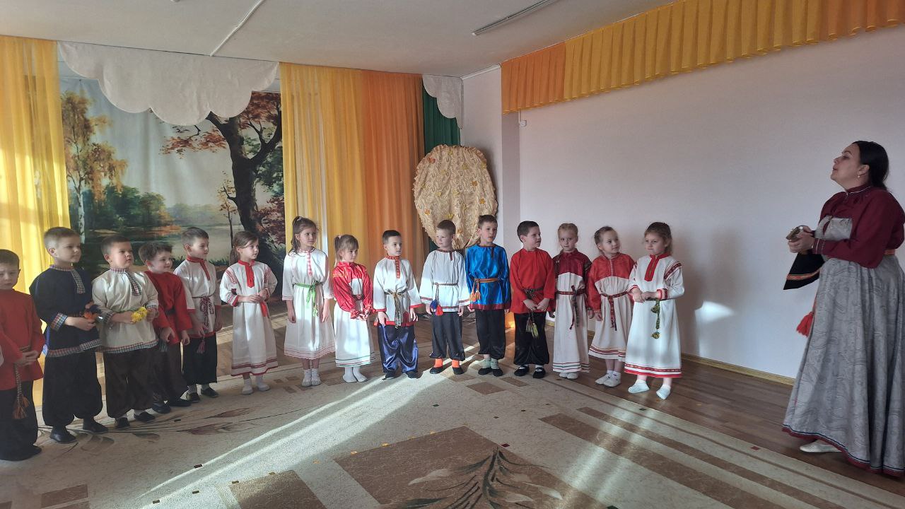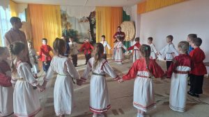 В подготовительной группе “Звездочки” весело и задорно проходят фольклорные развлечения. Дети с радостью знакомятся с народными традициями, играми и песнями. Особенный интерес у ребят вызывает русская народная песня-игра “Золотые ворота”. Под веселую мелодию дети становятся в круг, двое из них поднимают руки, изображая “ворота”, а остальные, держась друг за друга, проходят цепочкой под песню. Ребята поют дружно, с улыбками и смехом, внимательно слушая и стараясь не пропустить момент, когда “ворота” закроются. Игра вызывает у детей живые эмоции, учит действовать сообща, развивает ловкость, внимание, чувство ритма. Фольклорное развлечение проходит в атмосфере радости и дружбы. Дети не только весело проводят время, но и приобщаются к культуре русского народа, учатся уважать традиции и играть вместе, поддерживать друг друга. Такие игры дарят хорошее настроение и делают жизнь в детском саду яркой и запоминающейся!
