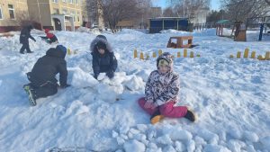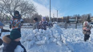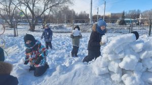 Сегодняшняя прогулка прошла весело, задорно и по-настоящему по-зимнему! Несмотря на мороз, дети подготовительной группы “Звездочки” с радостью отправились на участок, ведь недаром в народе говорят: “Мороз невелик, да стоять не велит!” Главным событием стало строительство снежных крепостей. Ребята дружно делились на команды, лепили крепкие снежные комья и возводили стены. Работали сообща, помогали друг другу, как известно: “Где дружно, там и хлебно”, а еще – “Один в поле не воин”. Во время строительства вспоминали зимние приметы и строки из стихов. Ребята с улыбкой повторяли: