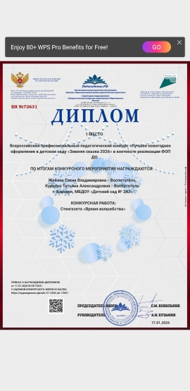 ООО “Московский институт профессиональной переподготовки и повышения квалификации педагогов” по программе “Воспитание детей дошкольного возраста”, разработанный в соответствии с ФГОС и Федеральным законом N273-ФЗ, 22 ноября 2023 г.